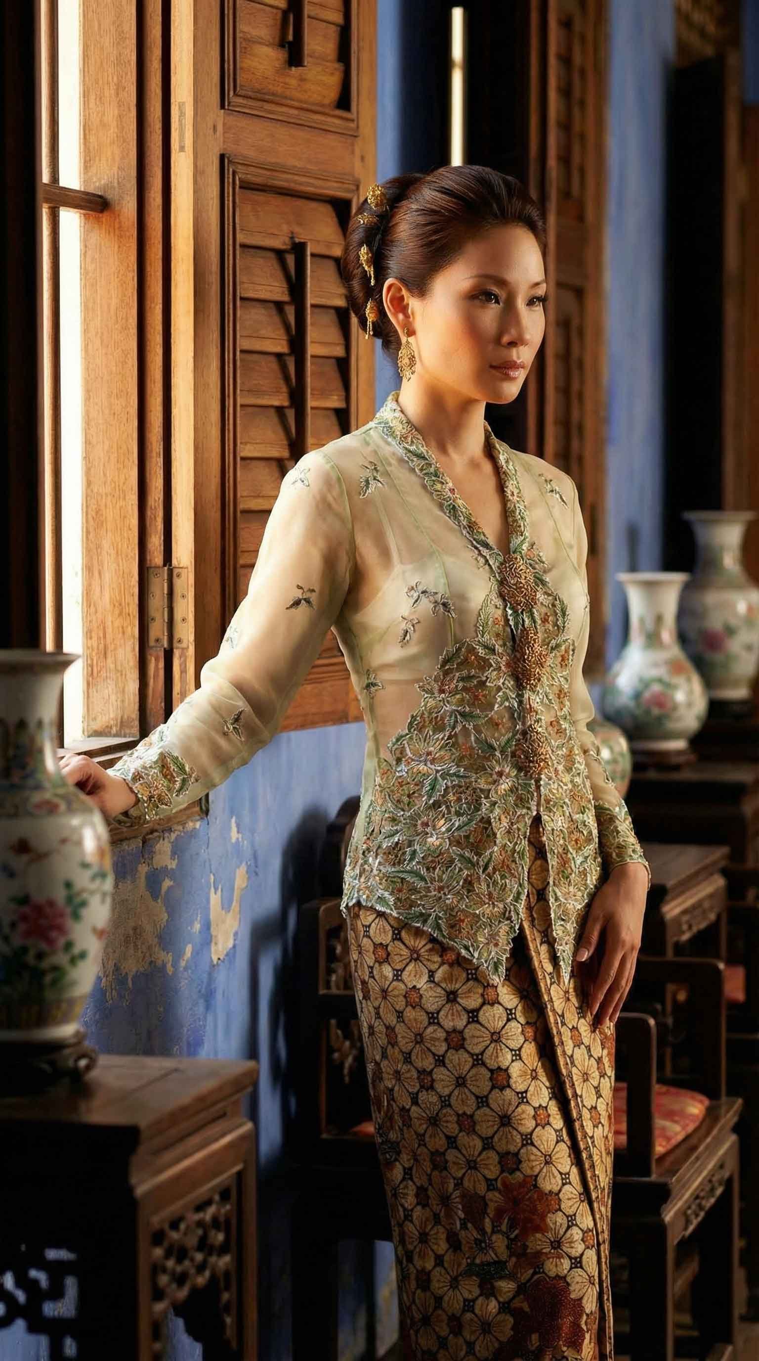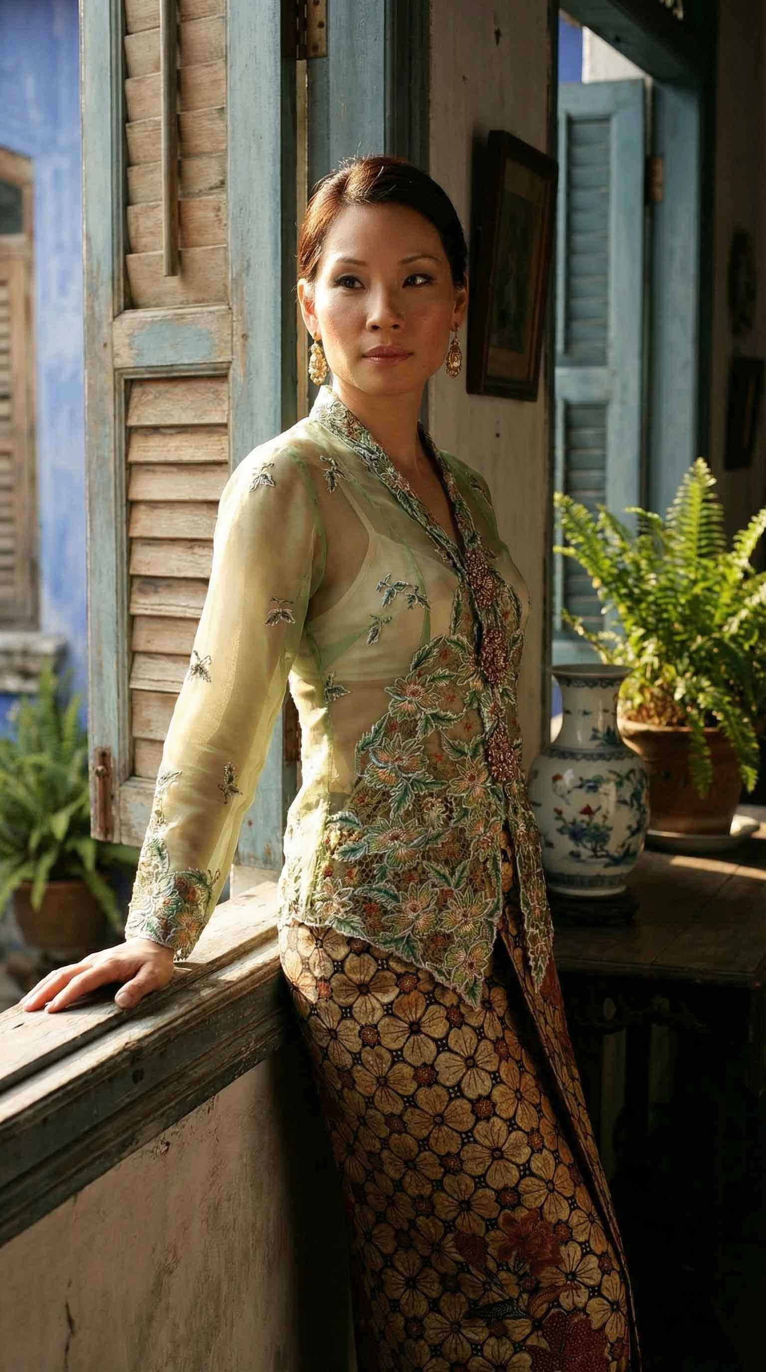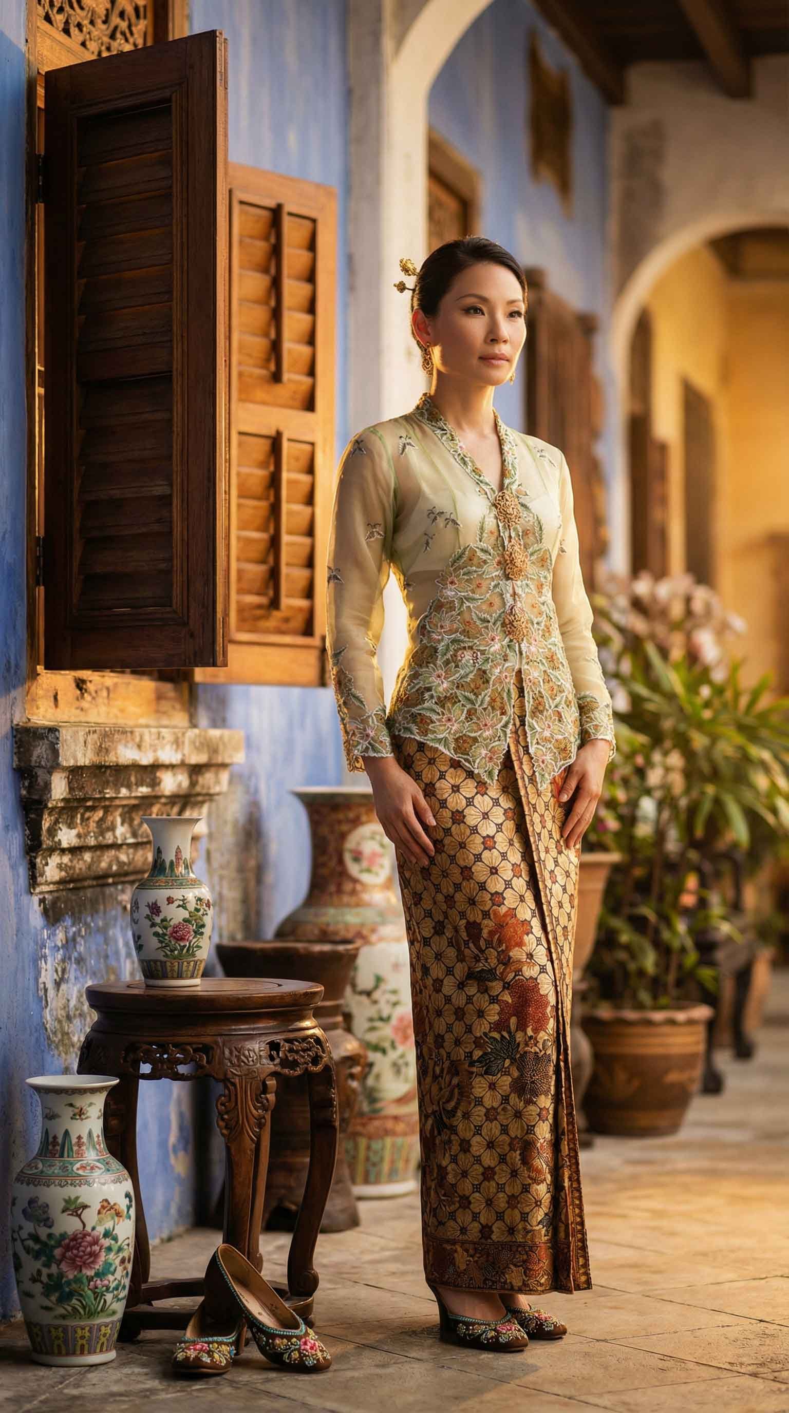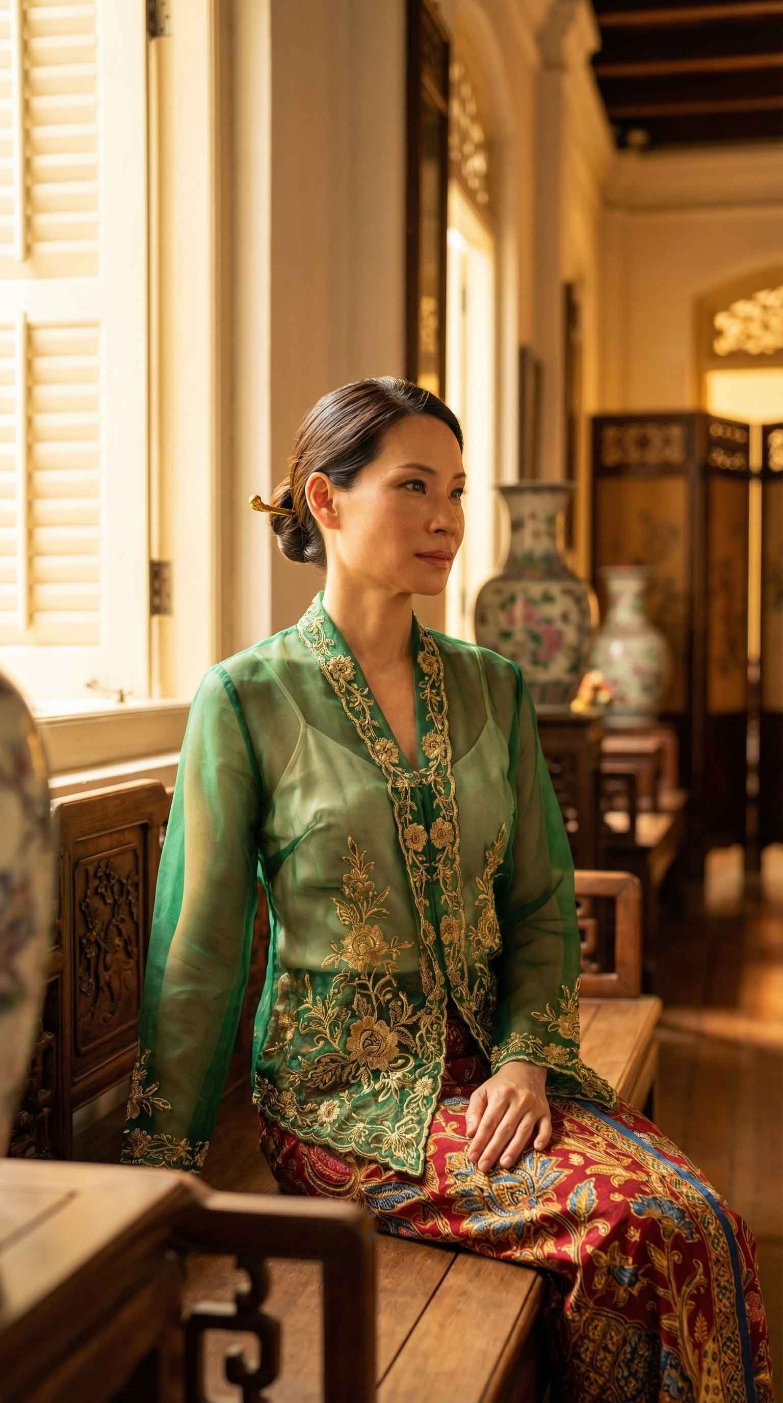 Originating from the Straits-born Peranakans, the Nyonya Kebaya represents centuries of cultural blending between Chinese, Malay, and local traditions.