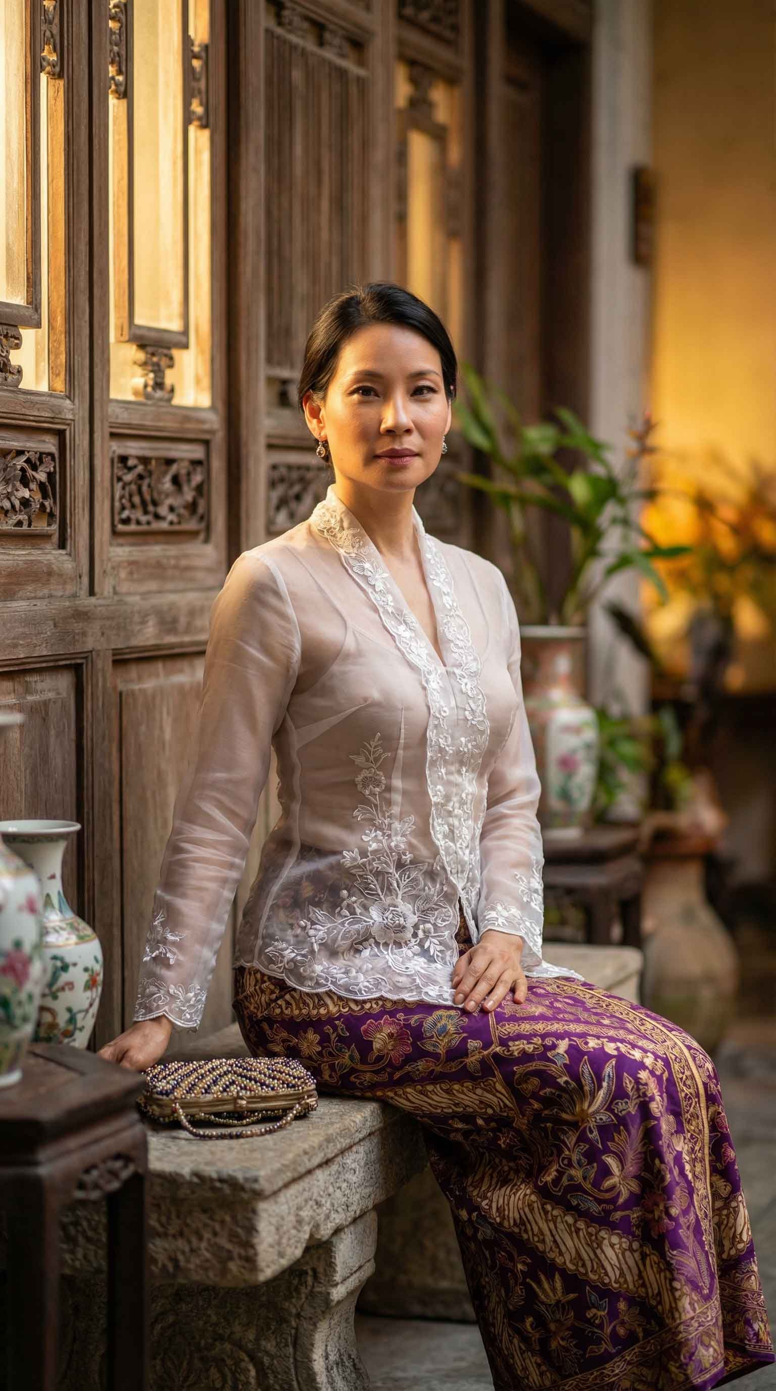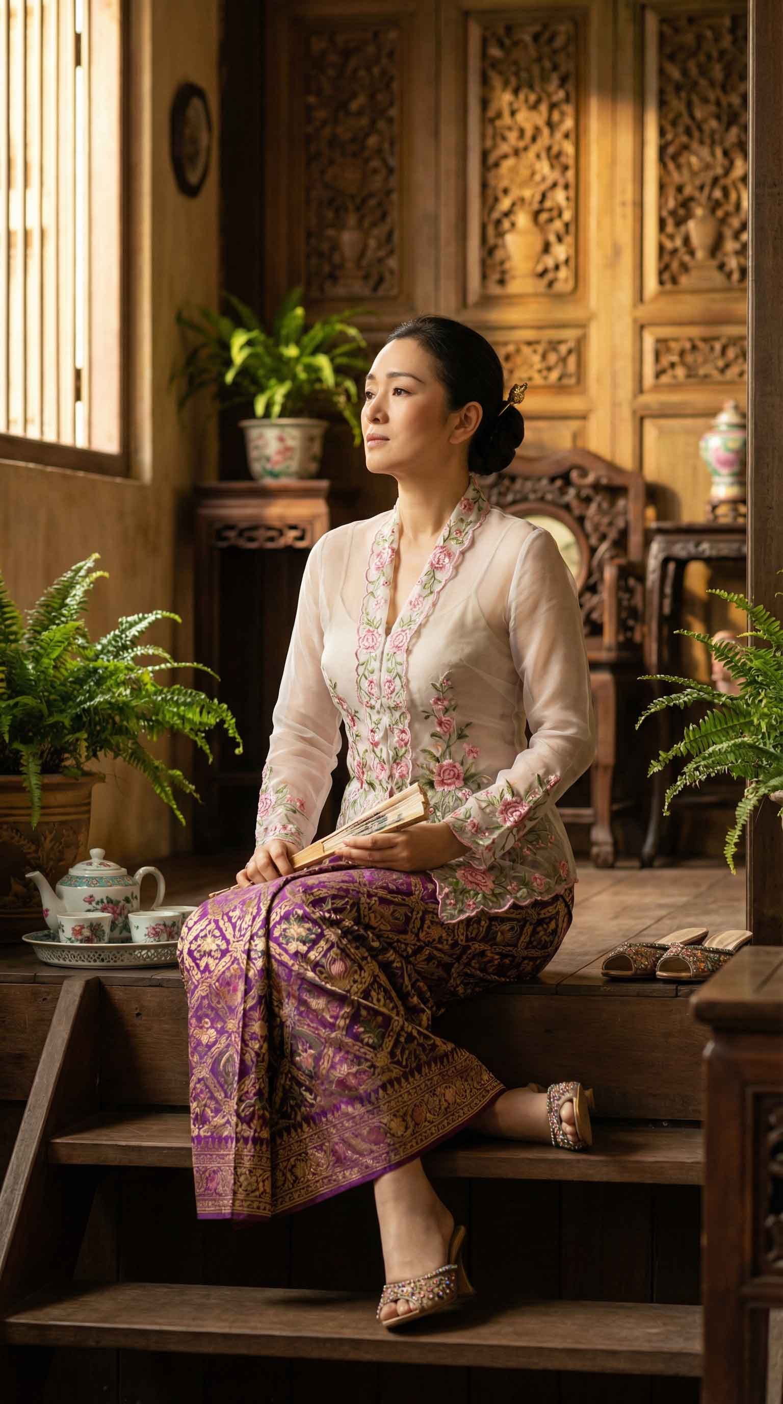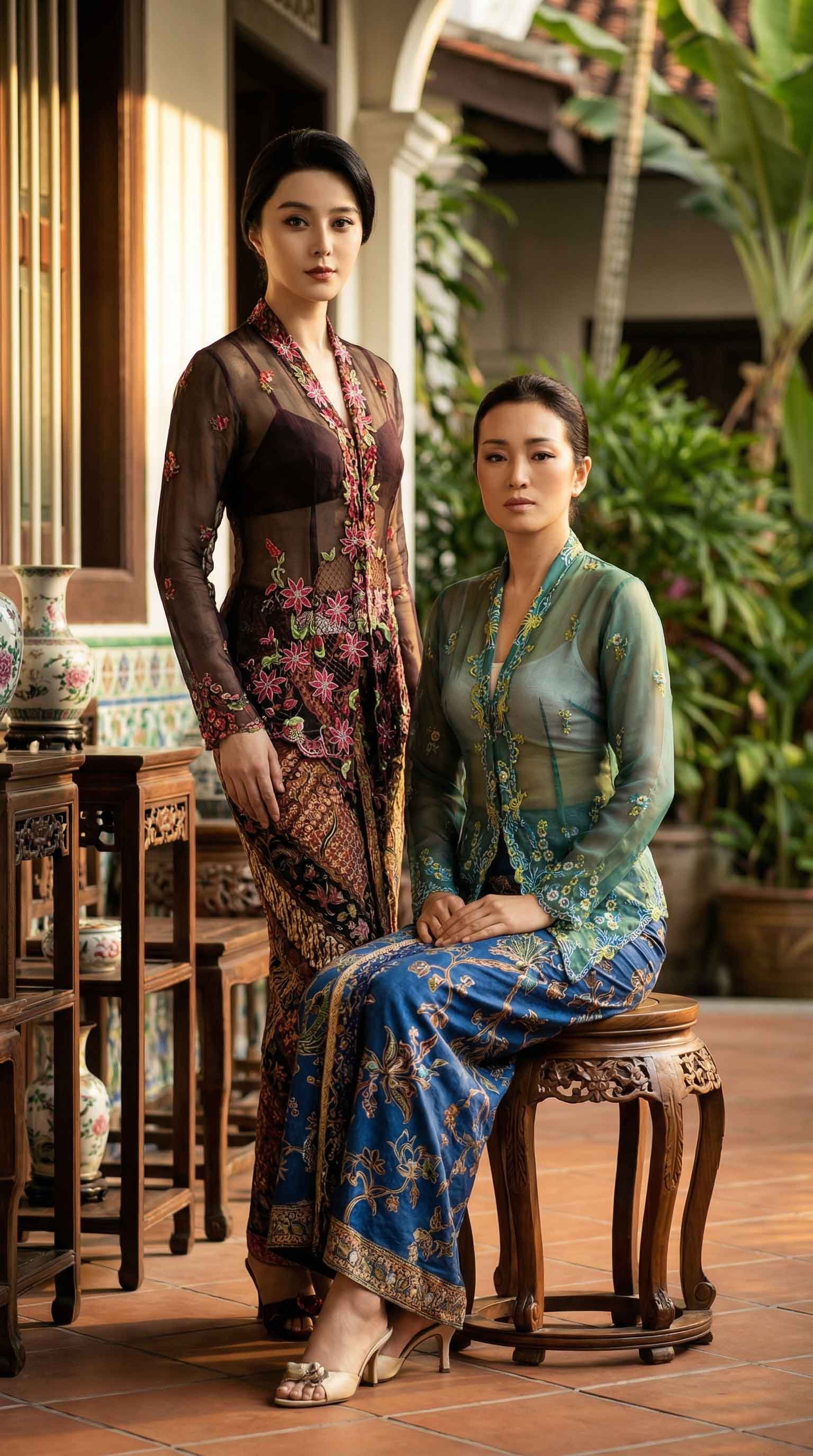 Originating from the Straits-born Peranakans, the Nyonya Kebaya represents centuries of cultural blending between Chinese, Malay, and local traditions.