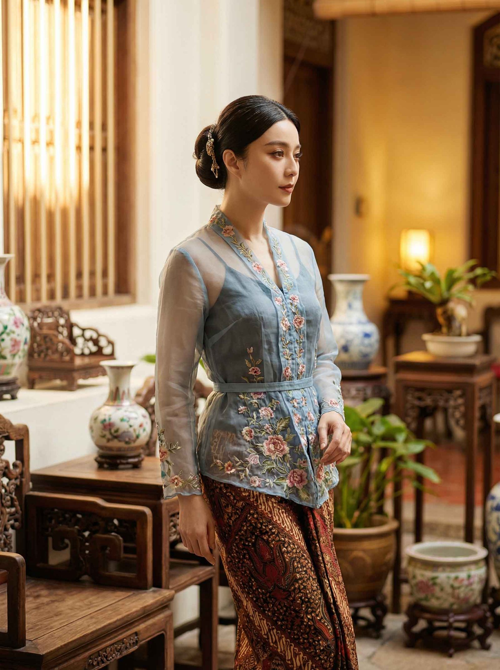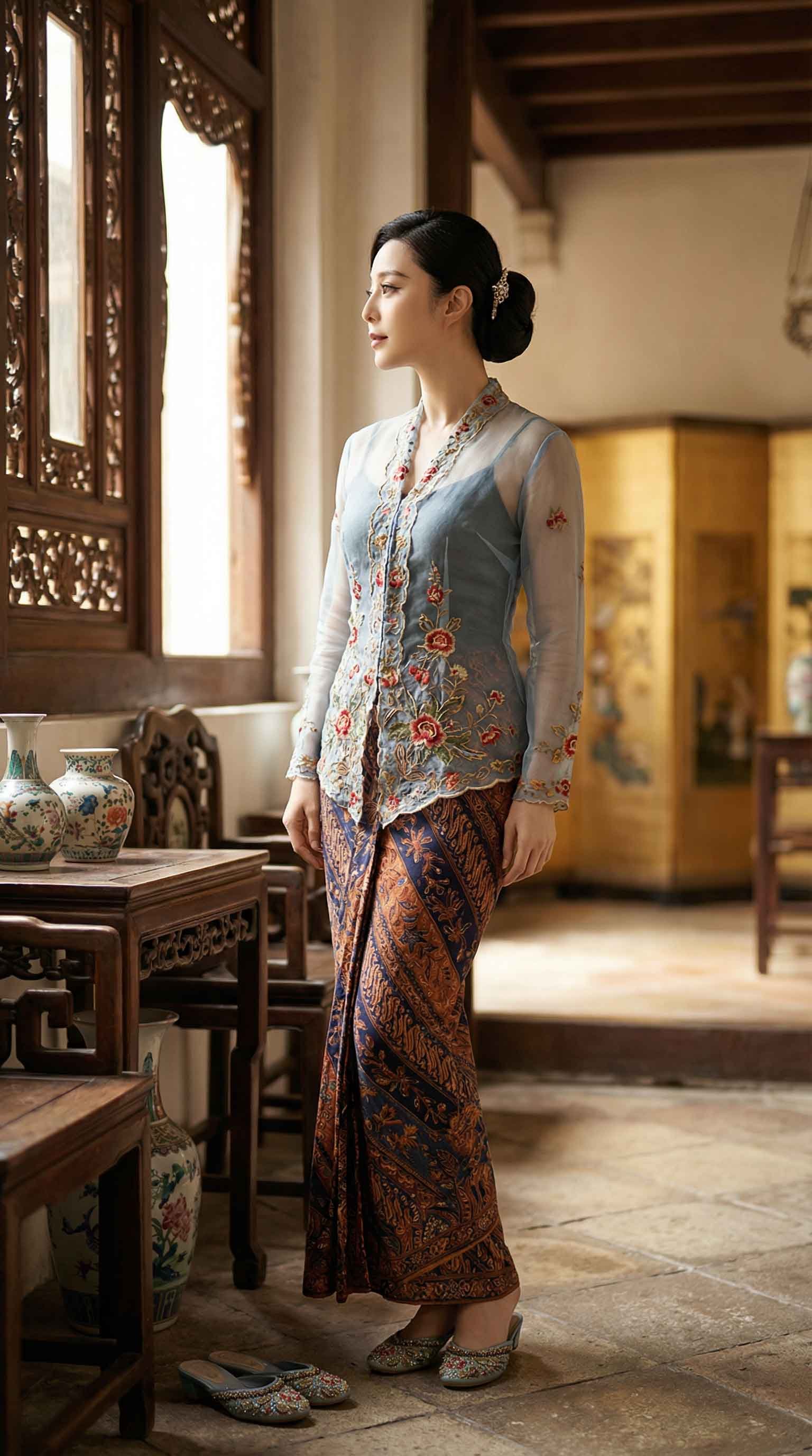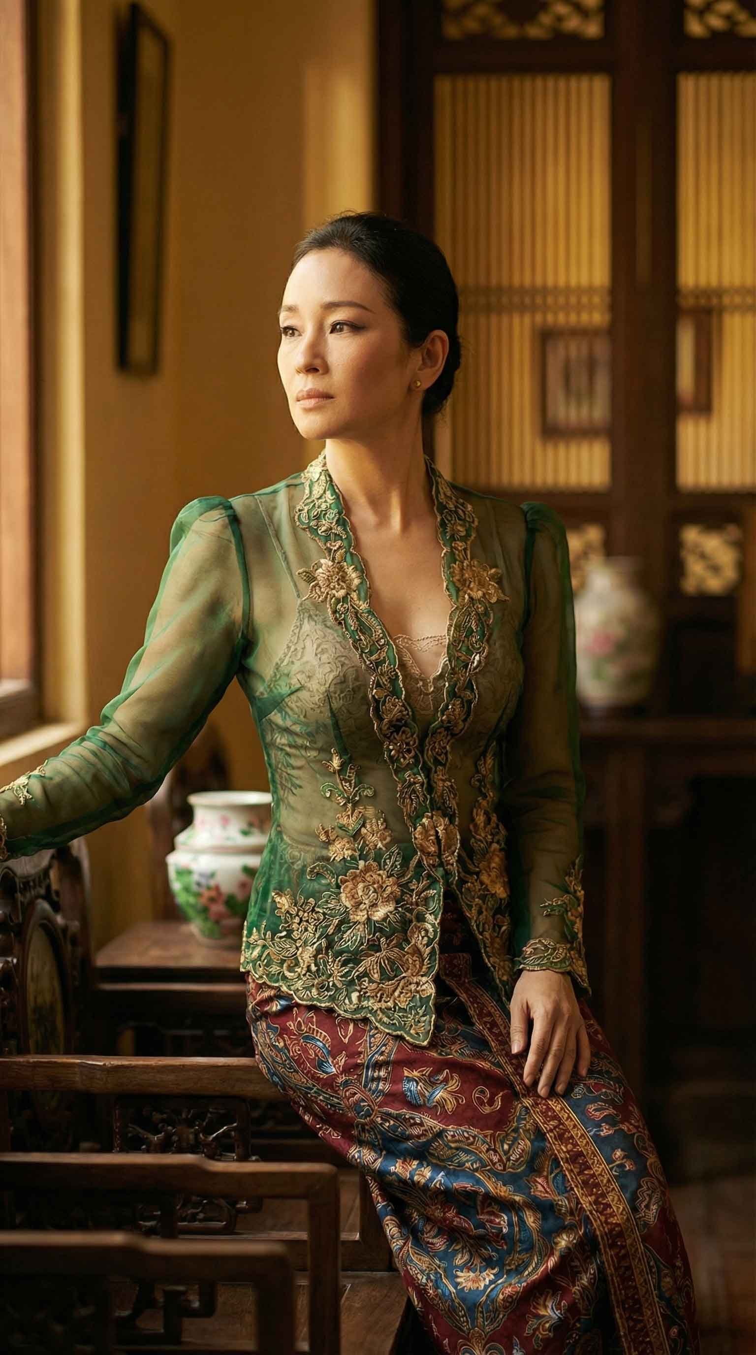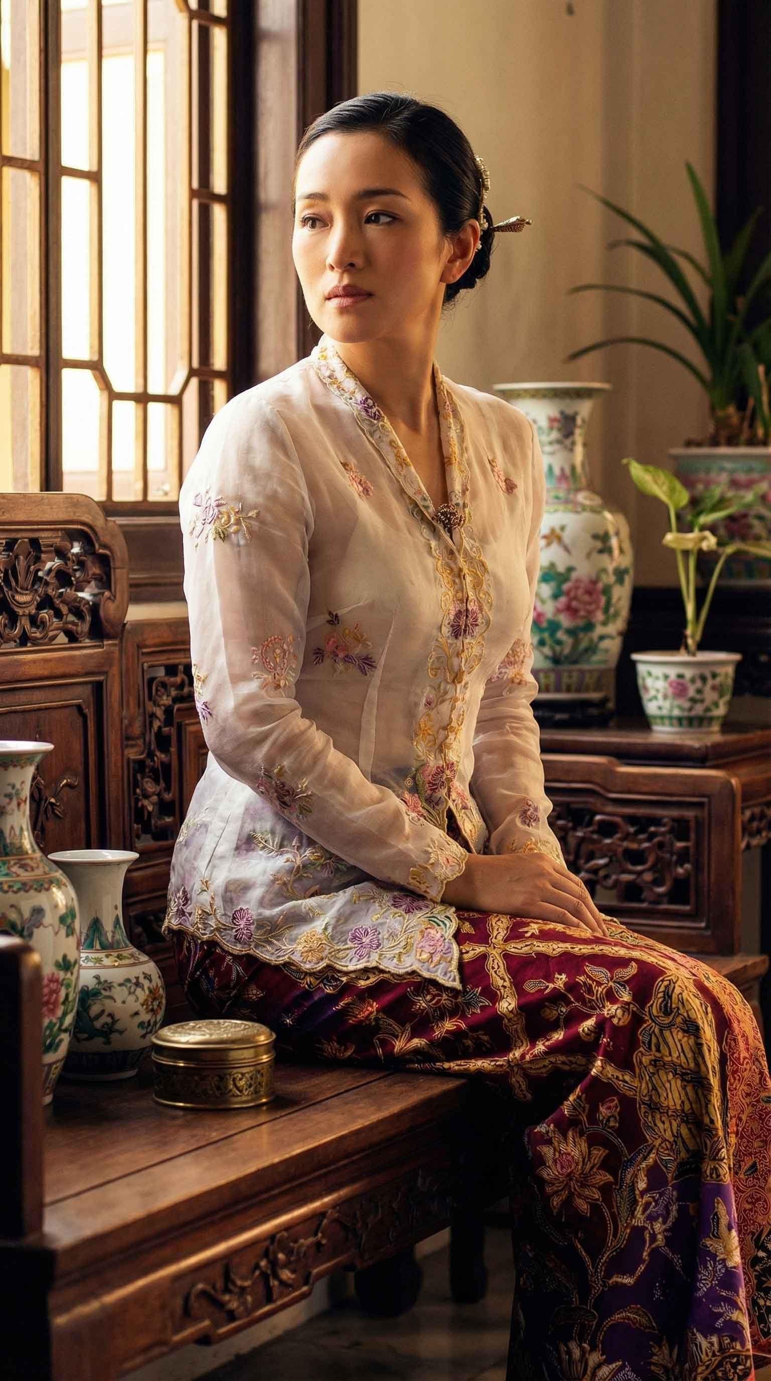 Originating from the Straits-born Peranakans, the Nyonya Kebaya represents centuries of cultural blending between Chinese, Malay, and local traditions.